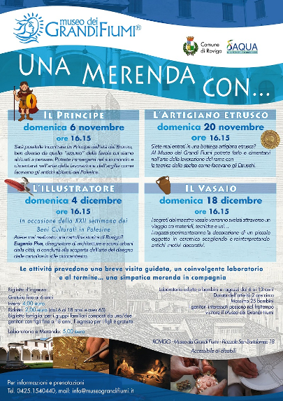 Sarà possibile incontrare un Principe dell’età del Bronzo, ben diverso da quello “azzurro” delle favole cui siamo abituati a pensare. Potrete immergervi nel suo mondo e cimentarvi nell’arte della lavorazione dell’argilla come facevano gli antichi abitanti del Polesine.