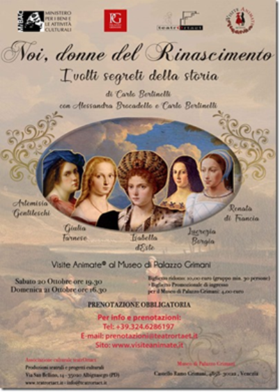 Ideata e messa in scena da TeatrOrtaet in collaborazione con il Museo di Palazzo Grimani e il Polo Museale del Veneto, la visita animata “Noi, donne del Rinascimento”, è un vero e proprio spettacolo teatrale in costume, che si svolgerà in maniera itinerante tra le sale del Museo.